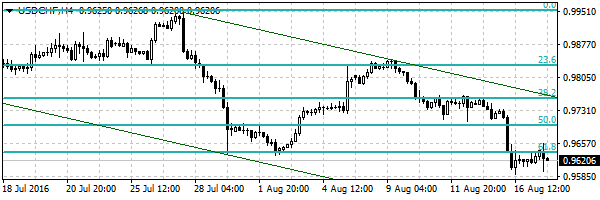 ФРАНК - Швейцарский франк смог укрепиться против доллара после выхода протоколов ФРС. Протоколы показали, что члены FOMC разделились во мнениях относительно того, будет ли уместно повышение процентных ставок в ближайшие месяцы. Комитет в целом согласился, что экономические показатели и ситуация на рынке труда в целом улучшились с июньского заседания. Однако, темпы найма на работу беспокоят некоторых членов ФРС. Также представители регулятора отметили краткосрочные риски экономическим перспективам США.Ранее восстановление доллара и разочаровывающий отчет по индексу делового оптимизма Швейцарии от ZEW помогли доллару временно укрепиться, особенно после вчерашних комментариев представителя ФРС Дадли.USD/CHF торгуется выше Chf0.9600 после тестирования минимумов на Chf0.9580. Серьезная поддержка остается в области Chf0.9520. Между тем, преодоление отметки Chf0.9840 (максимум 9 августа) откроет дорогу на Chf0.9954 (максимум 27 июля и 30 мая).