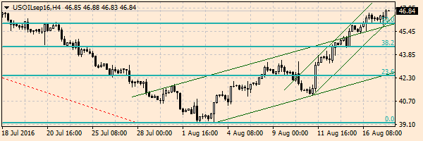 Аналитика для бинарных опционовНЕФТЬ - К концу дня цены на нефть возобновили рост и вплотную приблизились к отметке $47.00 за баррель.Ранее цены на нефть стабилизировались в среду после того, как министерство топлива США опубликовало свой отчет по запасам сырой нефти, которые показали большее снижение, чем ожидалось. Нефть марки WTI отступила на 0.15% до $46.50 за баррель.Нефть WTI торговалась в районе $45.93 прежде, чем вышли данные по запасам, однако котировки не смогли восстановиться после резкого роста в начале недели и в преддверии выхода протоколов FOMC.Согласно данным министерства топлива США, запасы сырой нефти в США на прошлой неделе сократились на 2.508 млн. баррелей против прогноза роста на 522,000, однако выше -1 млн. в отчете Американского института Нефти.Нефть на $46.80, при этом выше сопротивление находится на $50.54 (максимум 22 июня) и $51.67 (максимум 9 июня 2016 года). С другой стороны, преодоление $45.35 (100-дневная МА) откроет дорогу на $41.10 (минимум 11 августа) и $40.31 (200-дневная МА).