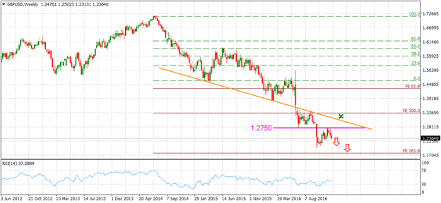 Восстановление пары после референдума было ограничено линией долгосрочного нисходящего тренда, которая раньше была поддержкой, а теперь играет роль сопротивления. Кроме того, пара пробила важную горизонтальную поддержку вблизи 1.2750, которая теперь может ограничивать любое восстановление. Если пара пробьет ее снизу вверх, быки могут воспрять духом, однако сопротивление на 1.30 (бывшая поддержка нисходящего тренда) может сдержать их.