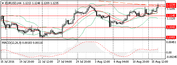 ЕВРО -EUR/USD наращивает свои достижения на фоне ослабления доллара, низких объемов торгов и слабой волатильности. Опубликованный накануне ежемесячный отчет Бундесбанка показал, что:- решение Великобритании о выходе из состава ЕС окажет ограниченное влияние на экономику Германии;- настроения среди предпринимателей остаются позитивными;- ожидается, что летом поддержку экономике Германии окажут экспорт, производство, строительство и потребительские расходы.Представитель ФРС, Вильямс сегодня заявил, что рассматривается возможность введения диапазона или замены целевого уровня инфляции 2%.Во вторник в 09:00 GMT, Германия предоставит августовский индекс делового оптимизма от института ZEW. В это же время ЕС опубликует отчет по торговому балансу за июнь и августовский отчет по деловому доверию от ZEW.EUR/USD тестирует сопротивление в области $1.1240/50, преодоление которой откроет дорогу на $1.1300/20.. Ближайшая поддержка находится в области минимумов 12 августа на $1.1130. Ниже поддержка остается в районе $1.1045 (сильная поддержка). Ниже поддержка находится на $1.0910 (минимумы 21 июня).
