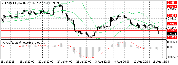 ФРАНК- Доллар во вторник остается под давлением после того, как публикация более слабых по сравнению с прогнозами экономических данных из США усилила спекуляции, что ФРС в 2016 году так и не повысит ставку.В настоящее время рынок фьючерсов на федеральные фонды оценивает вероятность того, что ставка будет повышена в декабре в 43% по сравнению с 45% в пятницу вечером.Тем не менее, продажи доллара ограничены, поскольку объемы торгов очень низкие, так как инвесторы ожидают протоколы последнего заседания ФРС, которые будут опубликованы на этой неделе. Ожидается,что протоколы дадут понять, каковы перспективы экономики США, тем самым, задав направление доллару на ближайшее время.В 12:30 GMT США предоставят статистику по закладке фундаментов, разрешениям на строительство и потребительской инфляции.В 13:15 GMT выйдет отчет по промышленному производству США за июль.USD/CHF продолжает снижение после преодоления Chf0.9700. Серьезная поддержка остается в области Chf0.9630 (минимум 29 июля). Ее преодоление откроет дорогу в район Chf0.9520. Преодоление отметки Chf0.9840 (максимум 9 августа) откроет дорогу на Chf0.9954 (максимум 27 июля и 30 мая).