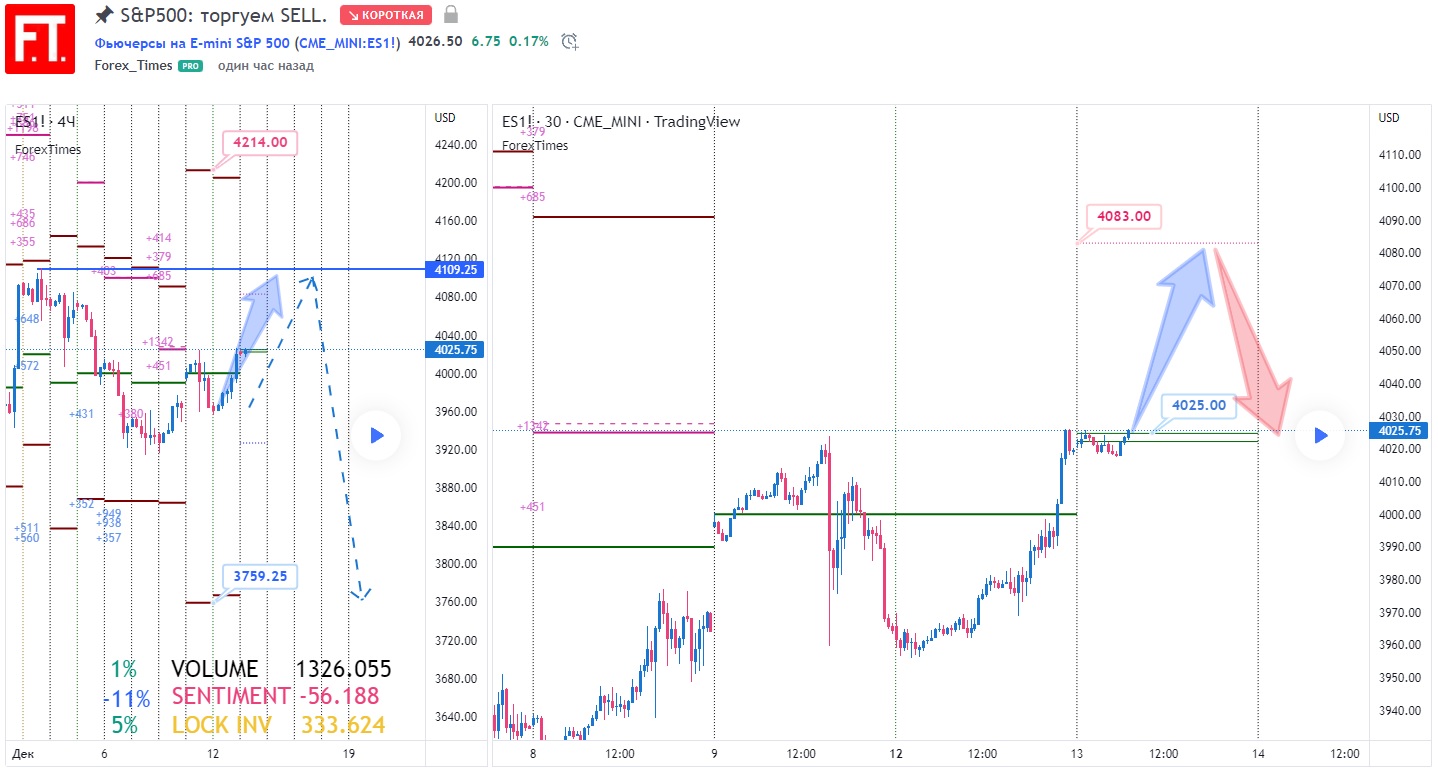 S&P500: торгуем SELL. Сегодня рекомендуется рассматривать продажи от уровня лимитного продавца (4083.00) в направлении уровня баланса дня (4025.00).