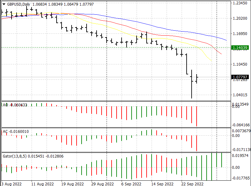 GBP/USDПара фунт/доллар на этой неделе достигла нового исторического минимума у 1.0300. Снижение стерлинга было довольно стремительным. Всего за несколько дней цена потеряла около 1000 пп. Во многом обвал фунта был спровоцирован стечением целого ряда негативных факторов. Это и ястребиный настрой ФРС, и усиливающийся энергетический кризис, и опасения по поводу финасовых планов нового правительства во главе с Элизабет Трасс.