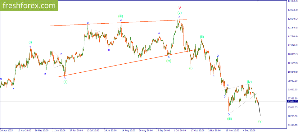 Волновой анализ рынка за 18.12.2025 BTCUSDBTCUSD: SELL 84950, SL 87500, TP 79500