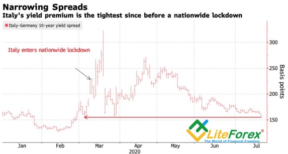 Европейские финансовые рынки встретили соглашение бурными овациями. Спред доходности 10-летних итальянских и немецких облигаций упал до минимальной отметки с марта, а фондовые индексы выросли на новостях о согласовании размера грантов.