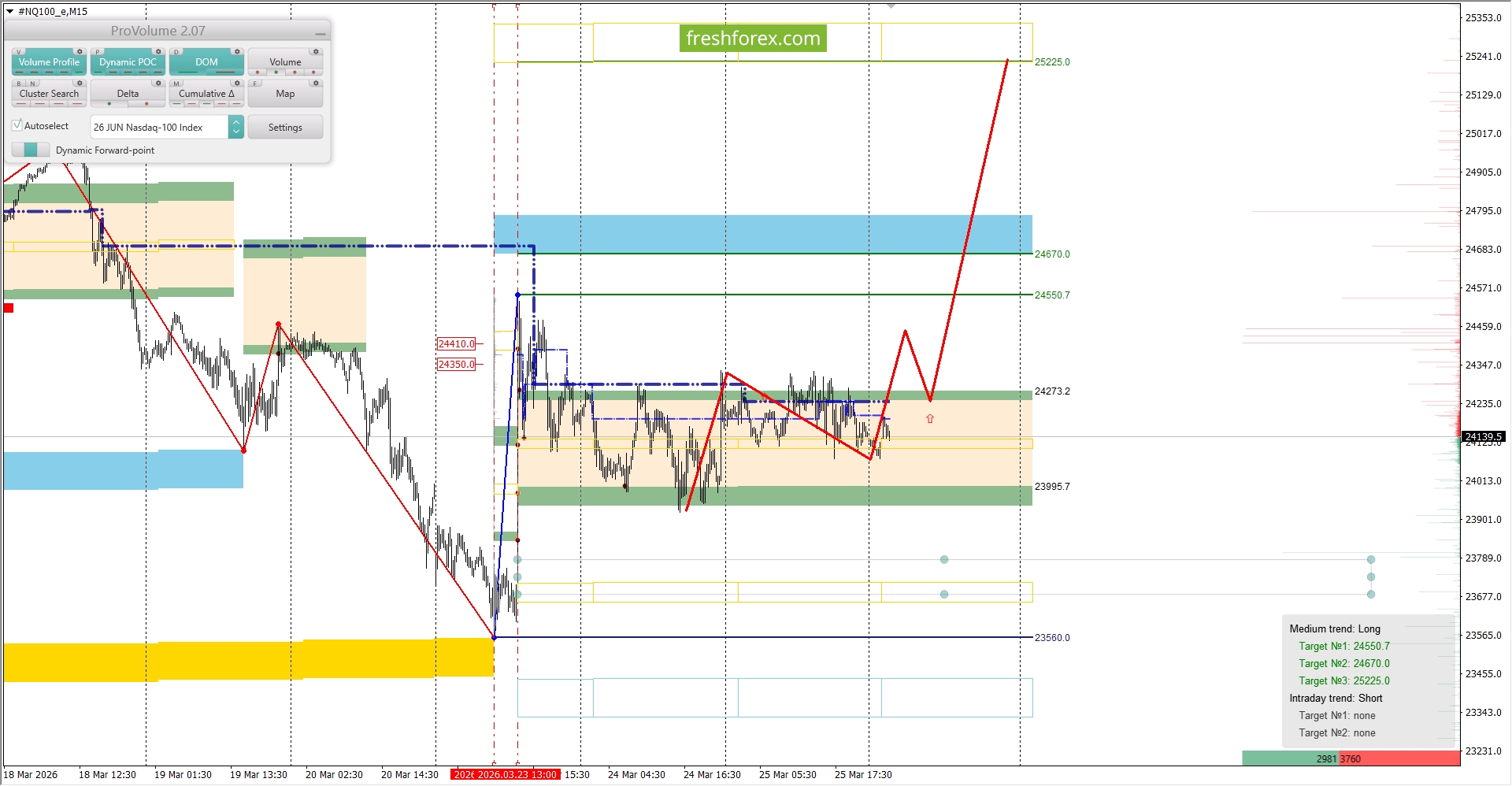Маржинальный анализ рынка за 26.03.2026 #NQ100#NQ100: BUY 23995.7-24273.2, TP1-24550.7, TP2-25225.0.