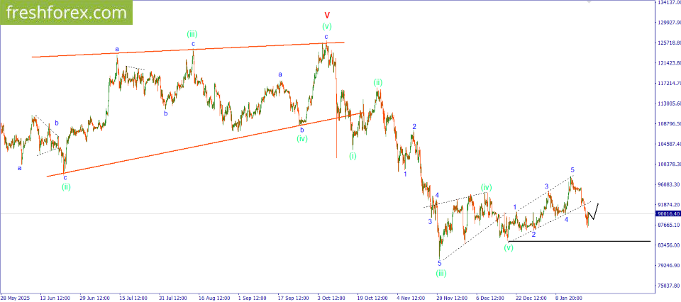 Волновой анализ рынка за 22.01.2026 BTCUSDBTCUSD: BUY 90500, SL 89500, TP 92000.