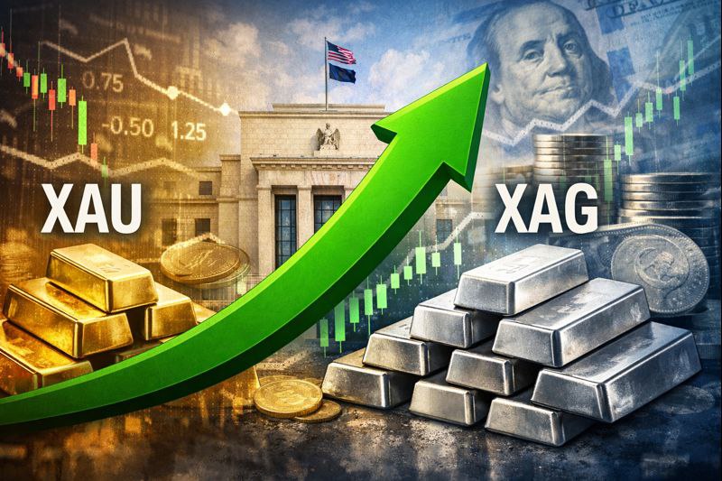 Золото (XAUUSD) берут как защитный актив, а серебро (XAGUSD) дополнительно подпирает промышленный спрос — отсюда потенциал более быстрого роста.