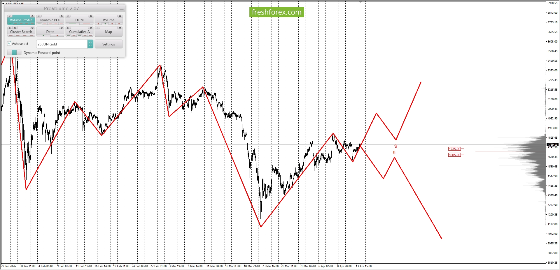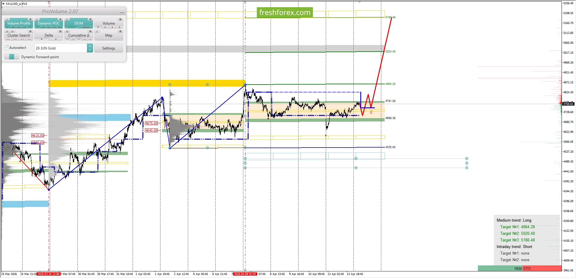 Маржинальный анализ рынка за 14.04.2026 XAUUSDXAUUSD: BUY 4698.38-4781.28, TP1-4864.28, TP2-5186.48.