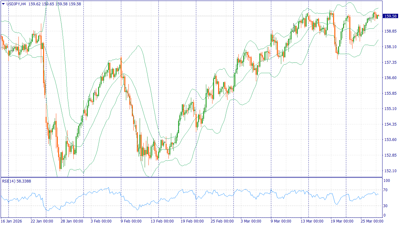 USD/JPY в пятницу держится у 159.50–159.60, оставаясь вблизи максимумов года. Пару поддерживает спрос на доллар: высокая нефть усилила тревогу по поводу мировой инфляции, а рынок сократил ожидания снижения ставки в США до конца года. Для иены это особенно чувствительно, потому что сочетание дорогой энергии и ухода капитала в доллар ухудшает положение страны, зависящей от импорта топлива.