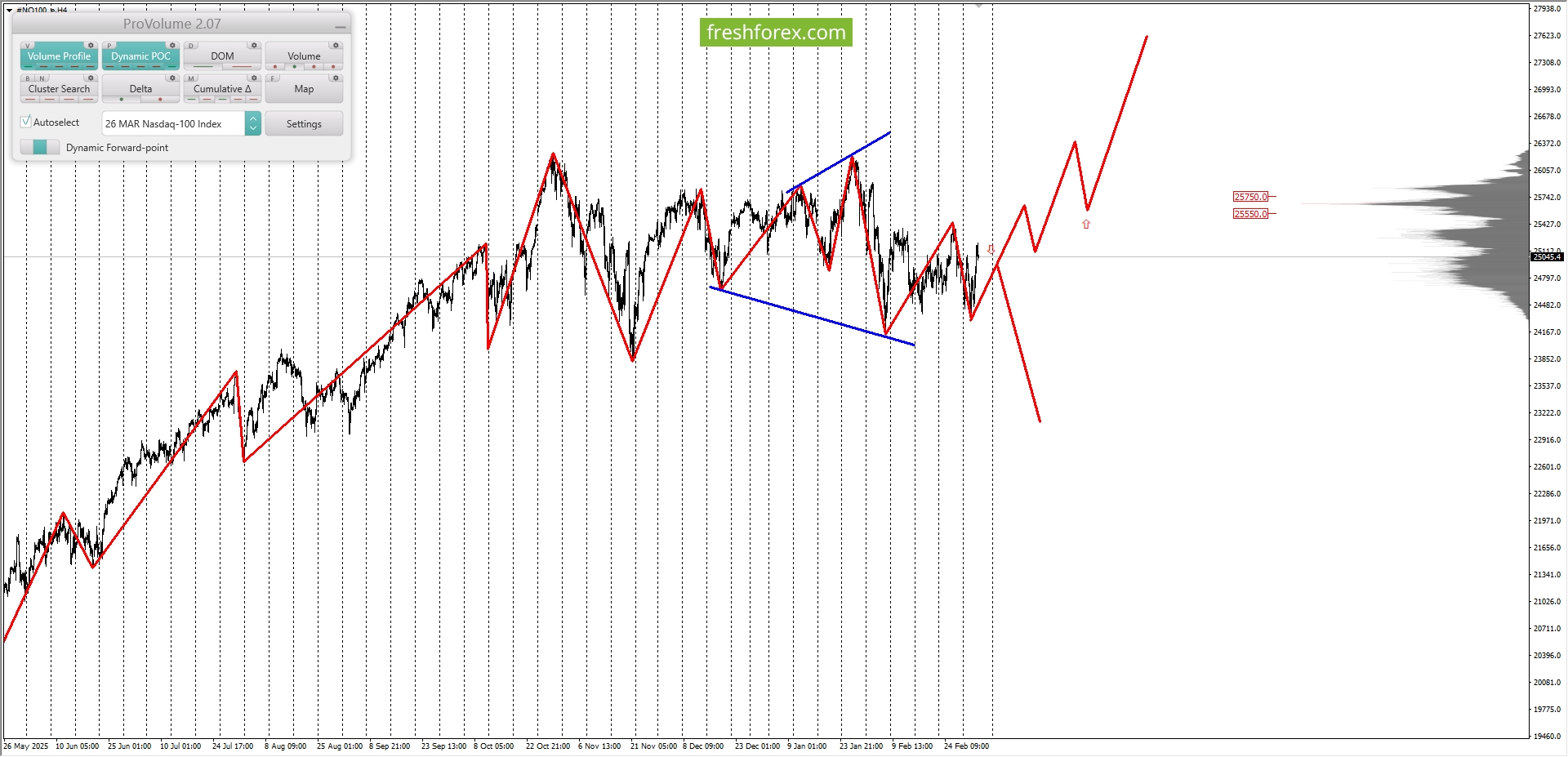 Долгосрочная тенденция: временная неопределённости. Максимальное скопление объемов текущего контракта расположено в диапазоне, по котировкам 25550.0–25750.0. В настоящий момент по #NQ100 совершаются инвестиционные операции ниже указанного диапазона, что говорит о силе продавцов.#NQ100: BUY 24651.6-24929.1, TP1-25206.6, TP2-25979.3.