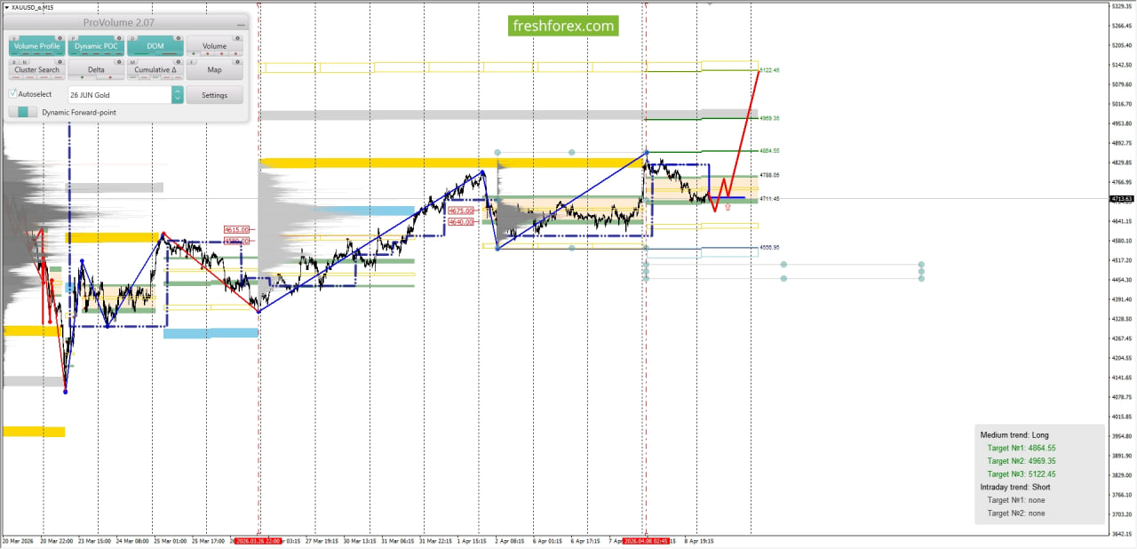 Маржинальный анализ рынка за 09.04.2026 XAUUSDXAUUSD: BUY 4711.45-4788.05, TP1-4864.55, TP2-5122.45.