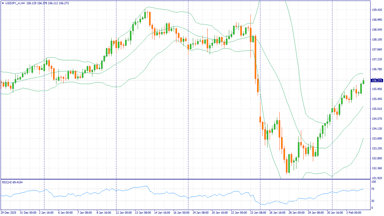 USD/JPY 4 февраля удерживается около 156.25: доллар стабилен, а иена слабеет на фоне предстоящих выборов в Японии и обсуждения дополнительных бюджетных стимулов. При этом рынок помнит о риске валютных интервенций, поэтому любые заявления властей способны быстро изменить баланс спроса и предложения.