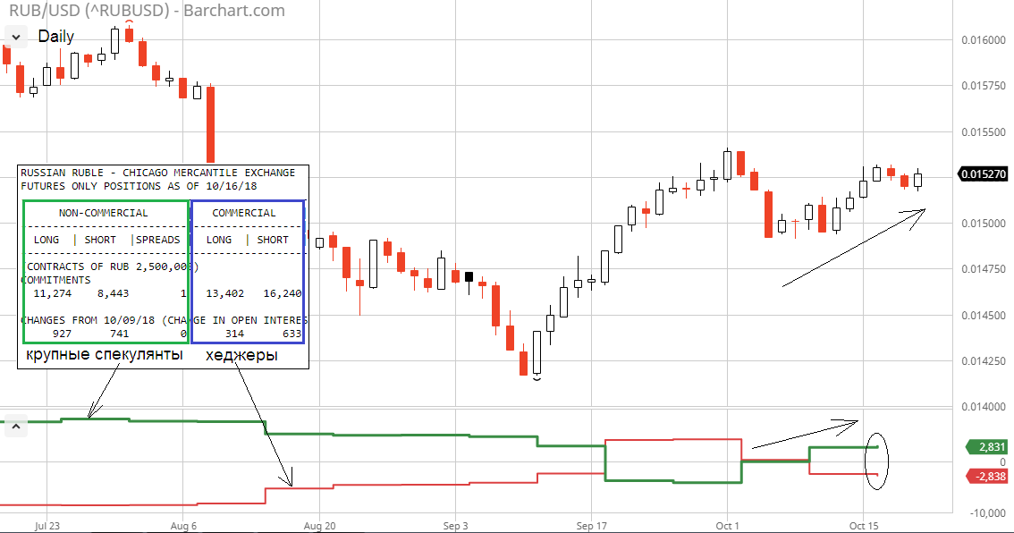 А вот по отчетам COT CFTC спекулянты продолжают наращивать длинные позиции по рублю, хотя продолжают открывать и продажи. Но чистая длинная позиция (Long-Short) потихоньку погружается в зеленую зону. Возможно, последнее падение нефти и внесет корректировку в позиции спекулянтов, но пока отталкиваемся от последних данных: