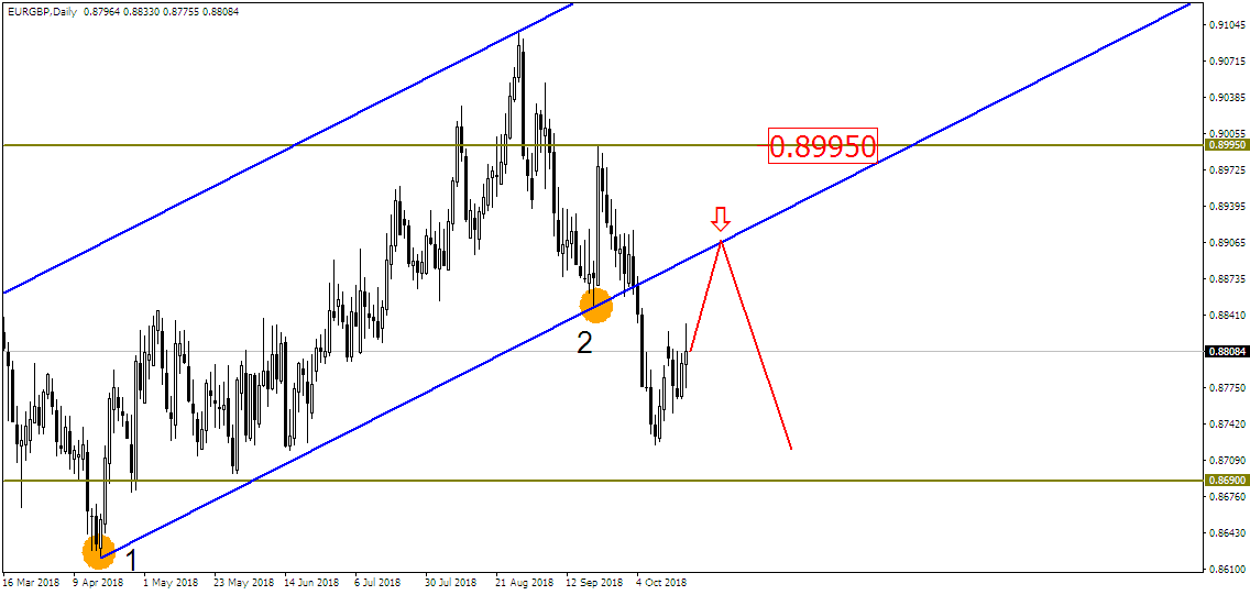 По кросс-курсу EUR/GBP мы пробили восходящий канал, поэтому при подходе к пробитому аптренду стоит ждать отскока цен вниз: