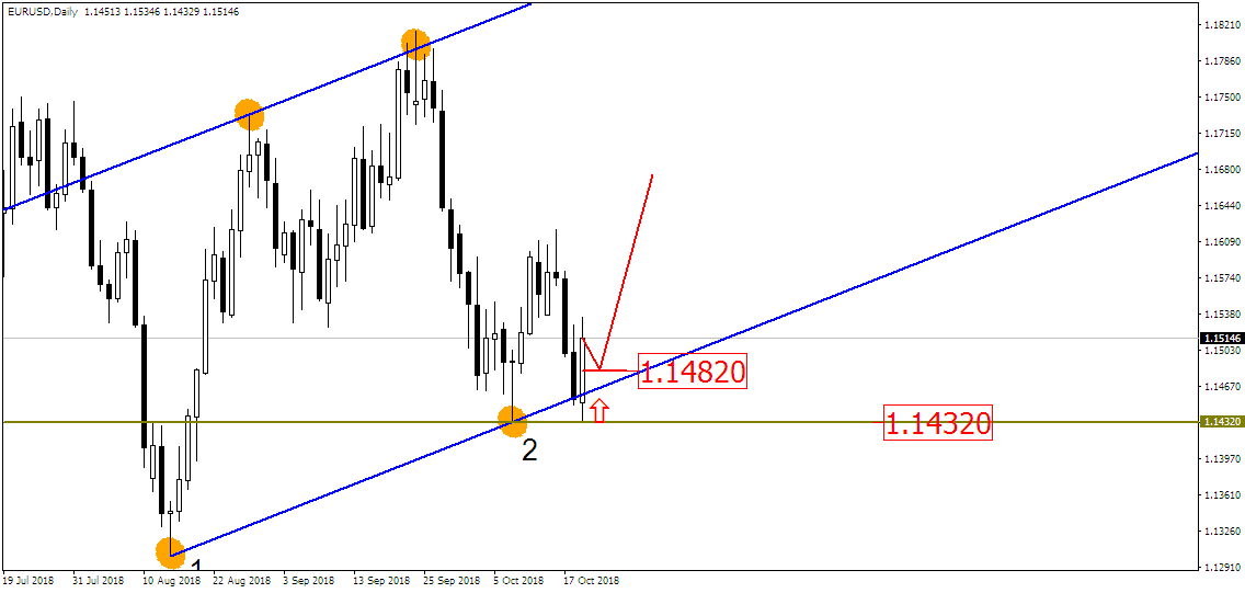 По единой валюте, на дневном таймфрейме, у нас сформировалось поглощение, которое уперлось в уровень 1.1432, а также локальный восходящий канал. Пока сценарий такой – откат к середине поглощения (уровень 1.1482), а потом поход пары вверх: