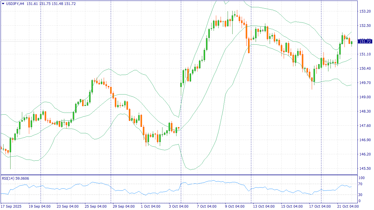 Иена получает поддержку на фоне роста рыночной волатильности и корректировки позиций перед заседанием Банка Японии 29–30 октября. Политические изменения в Токио сопровождаются акцентом на устойчивый рост заработных плат как условие для достижения ценовой цели, что повышает чувствительность рынка к возможным сигналам ужесточения политики в ближайшие месяцы.