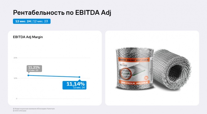 По итогам 2024 года рентабельность по EBITDA adj в целом сохранила уровень прошлого года. Компания стремится к восстановлению значения до уровня начала 2023 года (15-16%), чему способствует рост объёмов продаж в отчётном периоде.