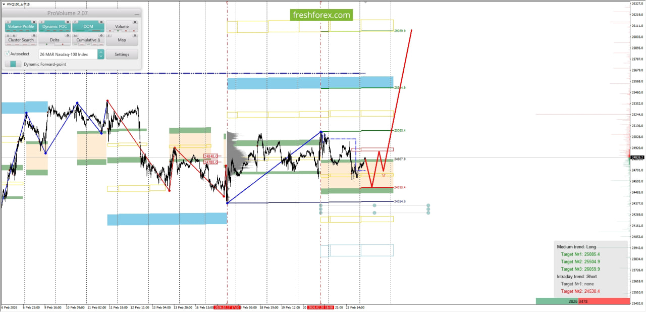 Маржинальный анализ рынка за 24.02.2026 #NQ100#NQ100: BUY 24530.4-24807.9, TP1-25085.4, TP2-26059.9.