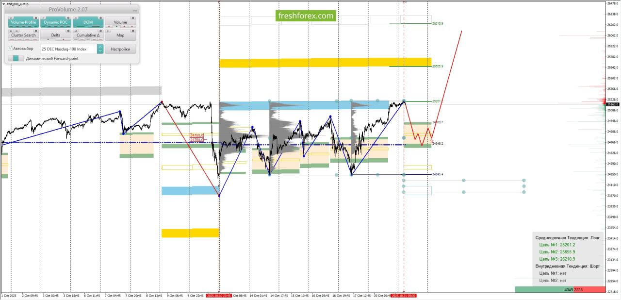 Маржинальный анализ рынка за 21.10.2025 #NQ100#NQ100: BUY 24646.2-24923.7, TP1-25201.2, TP2-25210.9.