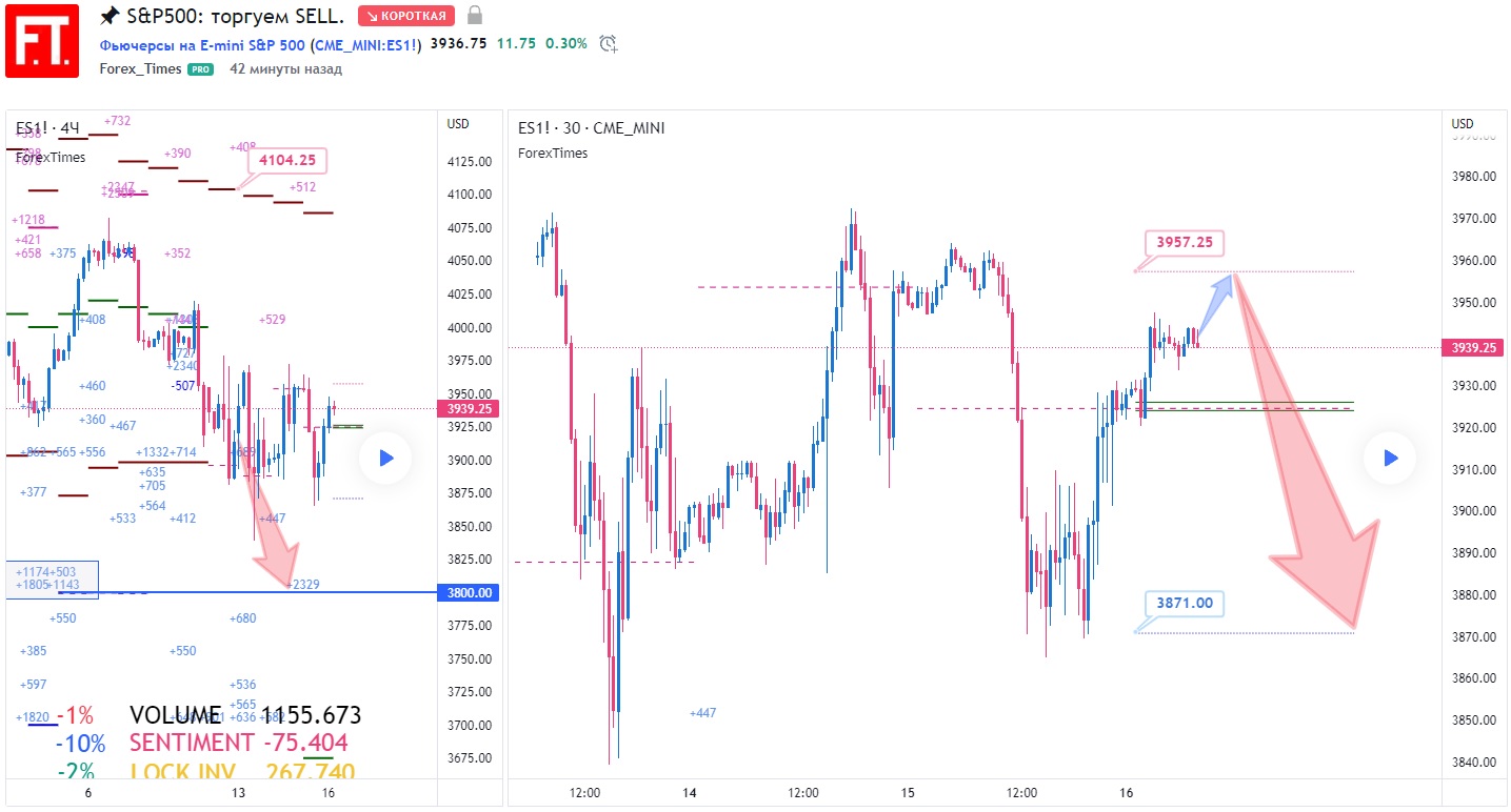 S&P500: торгуем SELL. Сегодня рекомендуется рассматривать продажи по тренду от уровня лимитного продавца (3957.25) в направлении уровня лимитного покупателя (3871.00).