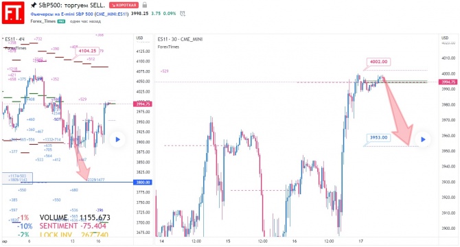 S&P500: торгуем SELL. Сегодня рекомендуется рассматривать продажи по тренду от текущего уровня стоимости торгового инструмента в направлении уровня лимитного покупателя (3953.00).