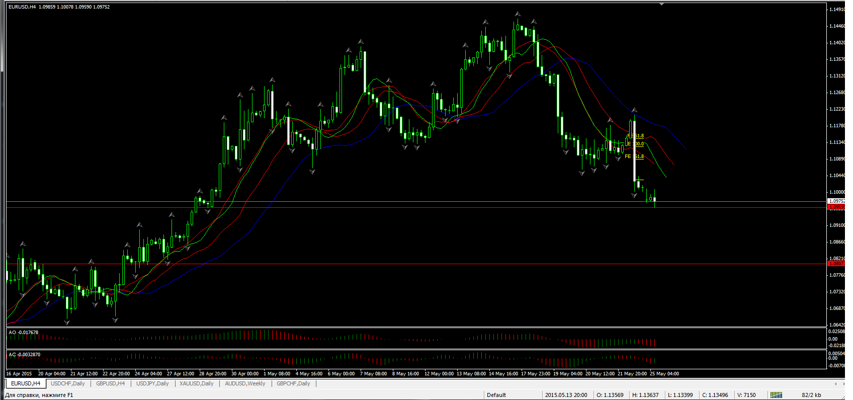 Вот уже дошли до красного линии. И можно поставит SELLSTOP в H4 если свеча останется под красный линии. Если будет так тогда цель второй красный линия. Если вы агрессивный трейдер можете еще продолжайте открыт позиции SELL.