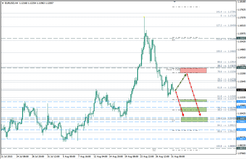 Вероятность развития новой волны паники сохраняется, однако, если ЦБ Китая не будет предпринимать никаких новых стимулирующих мер в ближайшее время, то игроки предпочтут занять выжидательную позицию до конца недели, когда будет опубликован отчет по труду США за июль. Сильные цифры существенно увеличат вероятность поднятия ставки уже в сентябре и окажут поддержку доллару, слабые могут привести к новой волне распродаж.