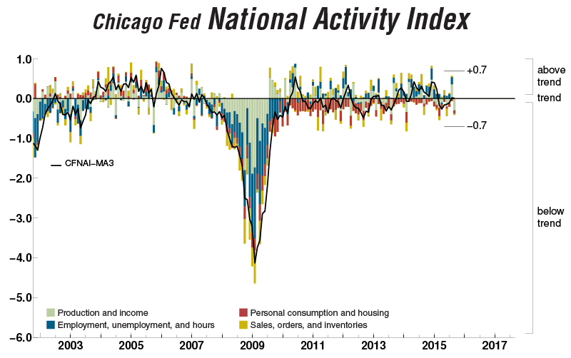 Экономическая активность ФРБ Чикаго снизилась до -0.41п, в отрицательную зону ушли все основные компоненты индекса: