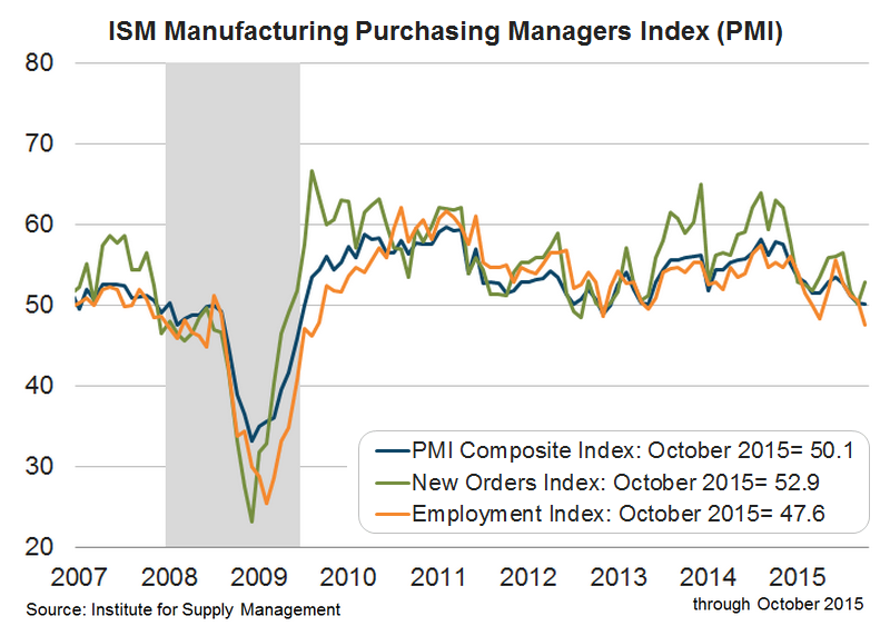 Качество создаваемых рабочих мест оставляет желать лучшего. К примеру, индекс ISM (Institute for Supply Management’s) находится на двухлетних минимумах, а субиндекс занятости снизился до 47.6 п., самого низкого значения с августа 2009 г. Отсюда ясно, что рост числа новых рабочих мест отражает далеко не все тенденции на рынке труда США, а предназначен, скорее, для манипулирования мнением рынка относительно повышения ставки в декабре.