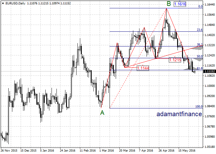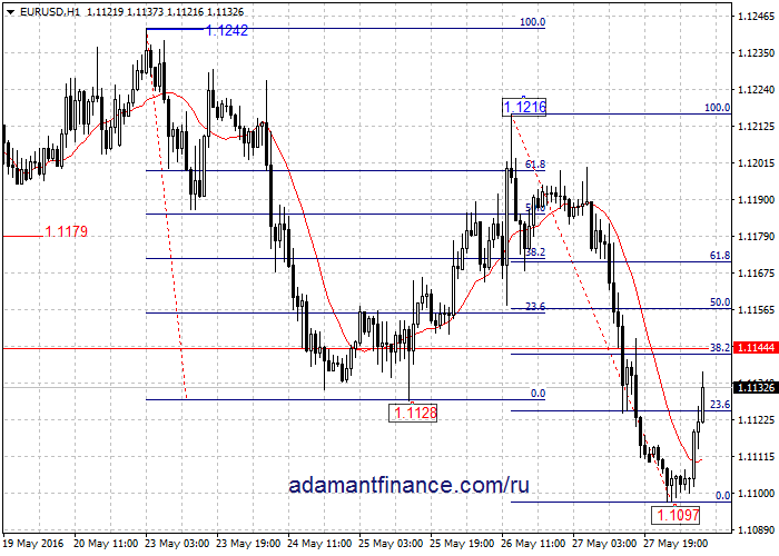 Анализ пары eurusd на 30.05.16Прошлая неделя завершилась бурным снижением пары eurusd, что было вполне ожидаемо, учитывая нисходящий тренд. Минимум на отметке 1.1128 был преодолен. На отскоке от дневного минимума 1.1144 или чуть выше можно вновь присмотреться к продажам.