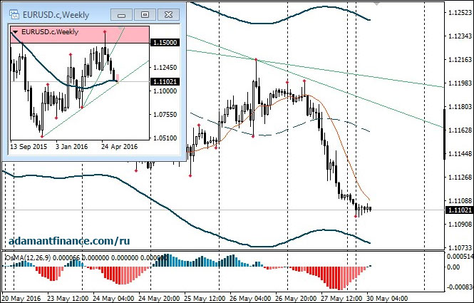 Технический анализ валютных пар EURUSD, GBPUSD, AUDUSD, USDCHF за 30.05.2016EURUSD