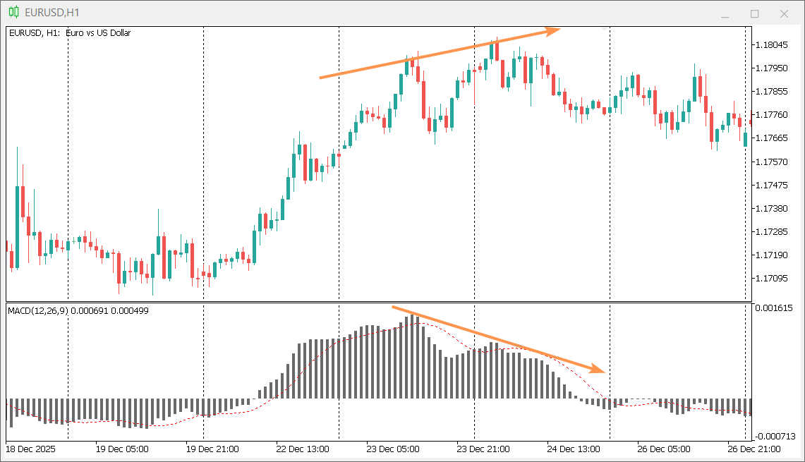 Дивергенция в трейдинге — это ситуация, когда цена актива движется в направлении, противоположном движению технического индикатора (чаще всего осциллятора, такого как RSI или MACD). Она сигнализирует о внутреннем ослаблении текущего тренда и потенциальном скором развороте или коррекции. Например, при восходящем тренде цена формирует новые более высокие максимумы, а индикатор при этом показывает более низкие максимумы. Это называется медвежьей (или негативной) дивергенцией и предупреждает о возможном нисходящем развороте. Существует также бычья (позитивная) дивергенция, которая возникает на нисходящем тренде и указывает на потенциальный рост.