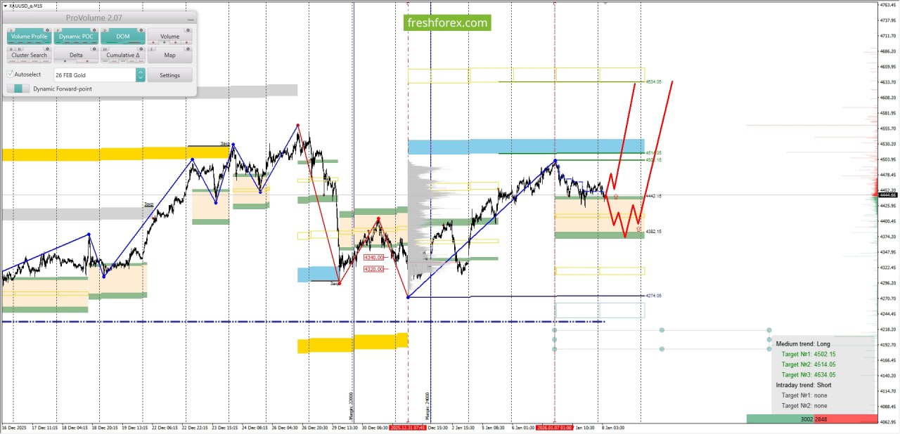 • Buy: 4382.15–4442.15, Take Profit 1–4502.15, Take Profit 2–4634.05.