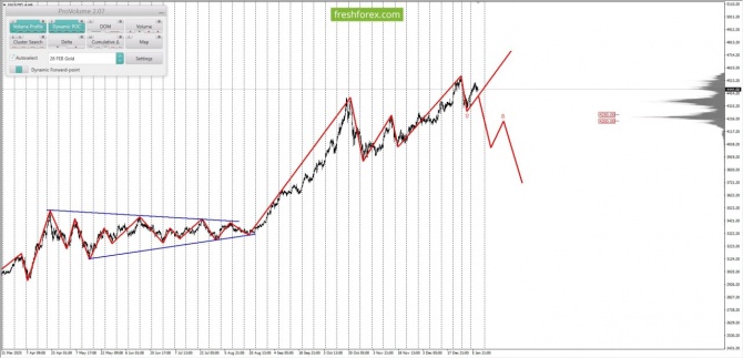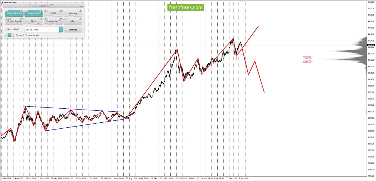 • Долгосрочная тенденция: в лонг. Максимальное скопление объемов текущего контракта расположено в диапазоне, по котировкам 4200.00–4250.00. В настоящий момент по XAUUSD совершаются инвестиционные операции выше указанного диапазона, что говорит о силе покупателей.