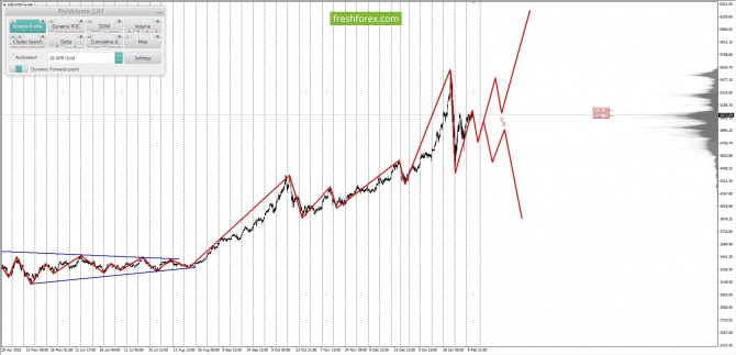 Долгосрочная тенденция: в лонг. Максимальное скопление объемов текущего контракта расположено в диапазоне, по котировкам 5060.00–5130.00. В настоящий момент по XAUUSD совершаются инвестиционные операции внутри указанного диапазона, что говорит о временной неопределённости.