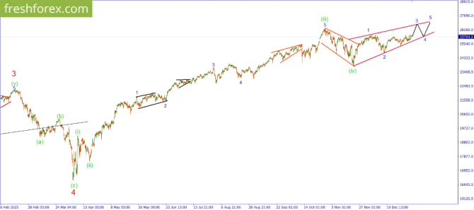 Рассматриваемая волновая картина пока по-прежнему рассматривается как развитие конечного диагонального треугольника в рамках развития волны (v) восходящего импульса.