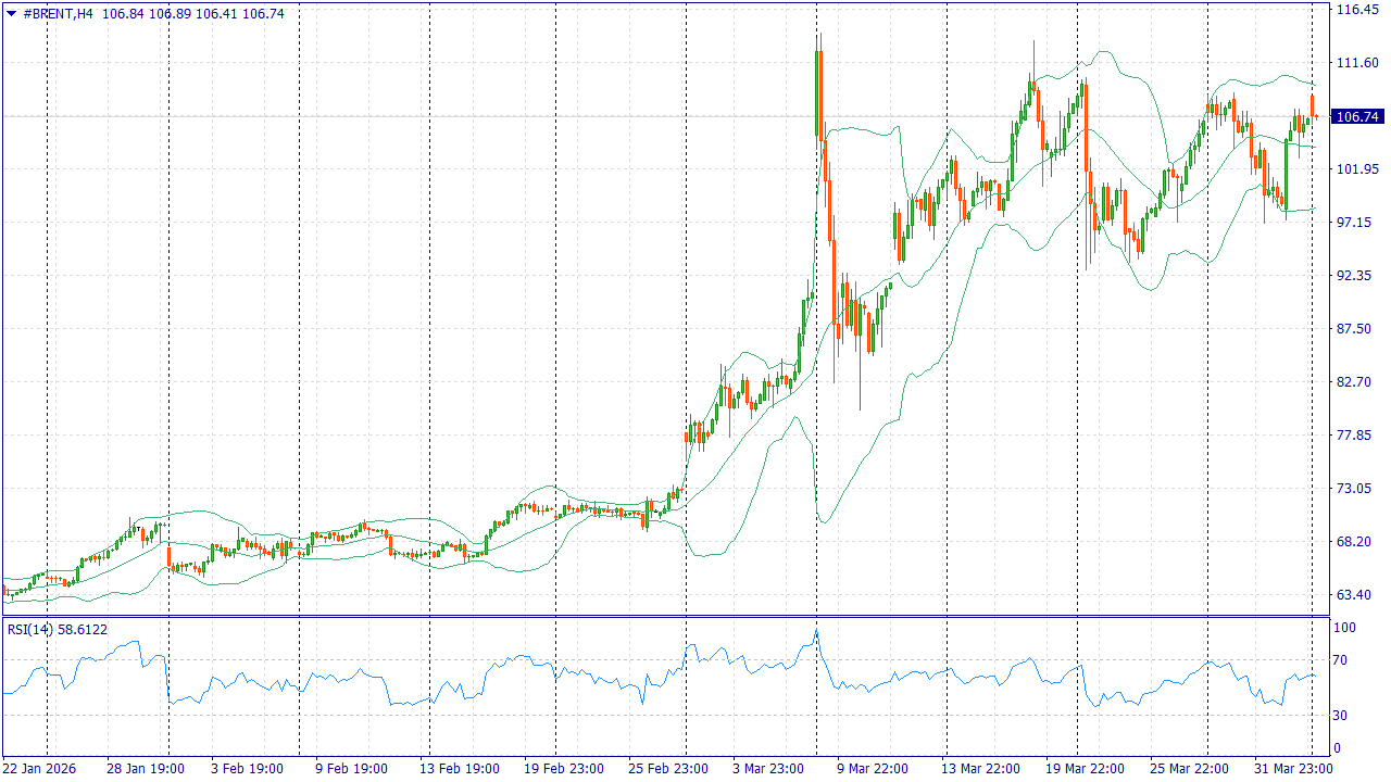 На сырьевом рынке сохраняется высокая амплитуда движений. После мощного роста в марте котировки нефти начали резко корректироваться: #BRENT в ходе торгов опускалась ниже $100 за баррель, теряя более 2% за день. При этом сам март оказался для нефтяного рынка экстремально сильным: #BRENT прибавила 64% за месяц, а #WTI — около 52%. Такие движения традиционно усиливают волатильность в валютных парах, индексах и акциях энергетического сектора.