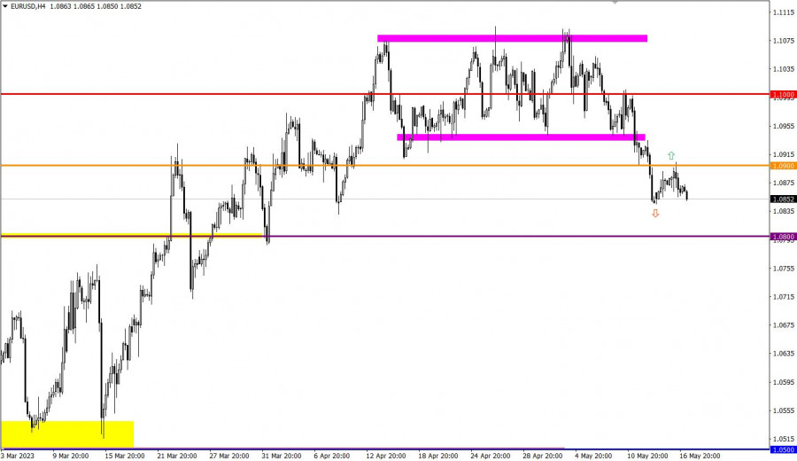 Учимся и анализируем, торговый план для начинающих трейдеров EUR/USD и GBP/USD 17.05.23ИнстаФорекс - Instaforex, 2 года назад Детали экономического календаря от 16 мая Слабые данные о рынке труда Великобритании оказали негативное влияние на фунт стерлингов и европейскую валюту. Уровень безработицы увеличился с 3,8% до 3,9%, что вызвало ослабление фунта стерлингов и, соответственно, евро. В Евросоюзе была опубликована вторая оценка ВВП за первый квартал, которая полностью совпала с первоначальной оценкой. Эти данные уже были учтены на рынке. Во время американской торговой сессии были опубликованы данные о розничных продажах в Соединенных Штатах, которые в апреле выросли на 0,4% по сравнению с предыдущим месяцем. Это оказалось ниже ожиданий экономистов, которые прогнозировали рост на 0,8%. В марте показатель снизился на 0,7%. Однако данные о промышленном производстве в США в апреле неожиданно выросли на 0,5% по сравнению с предыдущим месяцем. В годовом выражении объем промышленного производства в США в апреле увеличился на 0,2% после роста на 0,1% в предыдущем месяце. Доллар США положительно отреагировал на эти статистические данные, что привело к укреплению его стоимости. Разбор торговых графиков от 16 маяЕвро не смогло преодолеть уровень 1.0900 по отношению к доллару США и вместо этого произошел отскок, сопровождаемый ростом объема коротких позиций. Несмотря на высокую волатильность, фунт стерлингов не смог преодолеть контрольное значение 1.2550 по отношению к доллару США. В результате возник откат, который снизил котировку ниже уровня 1.2500.