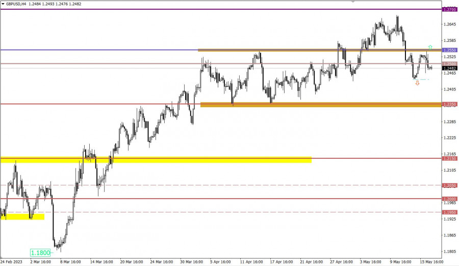 На данный момент единственное значимое событие – публикация итоговых данных по инфляции в Европейском Союзе. Однако эти данные в основном будут подтверждением предварительных оценок, поэтому рынок не ожидает значительной реакции на них. Однако в случае расхождений между ожидаемыми и фактическими показателями возможна активность спекулянтов. Временной таргетинг Инфляция в ЕС – 12:00 по МСК Торговый план – EUR/USD 17 маяВ данной ситуации продавцы оказывают давление, что может привести к последующему формированию коррекционного хода. Однако полноценный технический сигнал для подтверждения этой теории возникнет только после удержания цены ниже уровня 1.1840. Пока что возможны колебания в диапазоне 1.0850/1.0900. Торговый план – GBP/USD 17 маяУстойчивое удержание цены ниже уровня 1.2500 увеличивает вероятность последующего снижения, открывая возможность для обновления локального минимума коррекционного хода. Что касается сценария восходящего движения, для его рассмотрения необходимо не только вернуться выше уровня 1.2500, но также удерживать котировку выше значения 1.2550, по крайней мере в четырехчасовом периоде. Что отражено на торговых графиках?