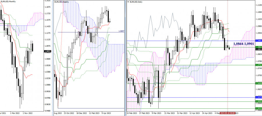EUR/USD и GBP/USD 17 мая – технический анализ ситуацииИнстаФорекс - Instaforex, 2 года назад EUR/USD Старшие таймфреймы Пара продолжает оставаться в нижней части зоны текущего притяжения и влияния 1,0864 – 1,0901 (недельный краткосрочный тренд + месячный среднесрочный тренд). В случае обновления минимума (1,0846) снижение может быть продолжено, а его ориентирами станут дневное облако (1,0814 – 1,0775) и месячная поддержка (1,0763). Если же игроки на повышение сумеют подняться выше 1,0901, то далее их внимание будет сосредоточено на прохождении сопротивлений дневного креста Ишимоку (1,0941 – 1,0981 – 1,1000) и максимального экстремума (1,1096). Н4 – Н1 На младших таймфреймах игроки на понижение близки к обновлению минимума (1,0846). Завершение коррекционного подъёма поможет им продолжить нисходящий тренд. Следующими понижательными ориентирами внутри дня являются поддержки классических Пивот уровней (1,0844 – 1,0826 – 1,0795). Ключевые уровни младших временных интервалов сегодня выступают в роли сопротивлений, они будут отстаивать интересы игроков на понижение на рубежах 1,0875 (центральный Пивот уровень) и 1,0903 (недельная долгосрочная тенденция). Преодоление данных сопротивлений и надёжное закрепление выше способно изменить действующий баланс сил. Далее для подъёма значение могут иметь сопротивления R2 (1,0924) и R3 (1,0942). *** GBP/USD Старшие таймфреймы Дневной крест сдерживает развитие движения, поэтому пара уже несколько дней работает в зоне притяжения его уровней (1,2477 – 1,2515 – 1,2561). Для изменения ситуации рынок должен покинуть зону влияния дневного золотого креста Ишимоку и преодолеть ближайшие рубежи. Игрокам на повышение важно закрепиться выше максимального экстремума (1,2678), что поможет завершить текущее коррекционное снижение, а игрокам на понижение после ликвидации дневного креста нужно завладеть недельным краткосрочным трендом (1,2421). Н4 – Н1 Подъём, который игроки на повышение реализовывали ранее, не привёл к потере недельной долгосрочной тенденции. Сейчас уже медведи смогли обновить минимум и продолжают снижение. Внутри дня понижательными ориентирами сегодня являются поддержки классических Пивот уровней (1,2416 – 1,2368) и цель на пробой облака Н4 (1,2392 – 1,2360). Ключевые уровни младших таймфреймов формируют в настоящий момент зону сопротивлений в районе 1,2497 – 1,2525 (центральный Пивот уровень дня + недельная долгосрочная тенденция), пробой которой может стать хорошим основанием для изменения действующего баланса сил. *** При техническом анализе ситуации использованы: старшие таймфреймы – Ichimoku Kinko Hyo (9.26.52) + уровни Фибо Киджун; младшие таймфреймы – Н1 – Pivot Points (классические) + Moving Avarage 120 (недельная долгосрочная тенденция). Материал предоставлен компанией InstaForex - www.instaforex.com |