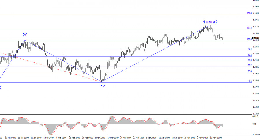Анализ GBP/USD. 17 мая. Налоги в Великобритании могут быть снижены.ИнстаФорекс - Instaforex, 2 года назад По инструменту Фунт/Доллар волновая разметка на данный момент выглядит по-прежнему сложно и неоднозначно. В том смысле, что она не выглядит, как классический коррекционный или импульсный участок тренда. Так как пик текущей повышательной волны зашел за пик последней волны b, то весь понижательный участок тренда, состоящий из волн a-b-c, можно считать завершенным. Следовательно, сейчас по фунту продолжается построение нового повышательного участка тренда. Начиная с 8 марта, я могу выделить только одну волну текущего масштаба, поэтому имеются все основания предполагать, что построение нового участка тренда займет много времени. Я по-прежнему считаю, что оба инструмента должны строить схожие волновые формации. Если это действительно так, то волна 2 или b по фунту может быть протяженной, а в это же время по европейцу может быть построена нисходящая трехволновка. Таким образом, я ожидаю глубокой волны b, как и в случае с построением предыдущей трехволновки. Следовательно, ожидать снижения инструмента можно к отметке 1,1850 или чуть выше. На текущий момент волна 1 или а имеет все шансы считаться завершенной, но все же имеются и определенные сомнения. Джереми Хант подтверждает высокую инфляцию.Курс инструмента Фунт/Доллар в среду не изменился. Начался день весьма позитивно, с точки зрения текущей волновой разметки, но ближе к концу дня началось повышение, которое опять ставит под сомнение готовность рынка к построению коррекционной волны b. Вторая неудачная попытка прорыва уровня 100,0% по Фибоначчи тоже о многом говорит. На текущий момент отход котировок от достигнутых максимумов достаточно слабый, поэтому я не уверен, что вторая, коррекционная волна начала свое построение. Новостной фон сегодня был незначительный. В США вышел отчет по числу выданных разрешений на строительство в апреле, которое оказалось немного ниже ожиданий рынка. Этот отчет и мог вызвать снижение спроса на доллар в последние несколько часов. Однако в любом случае амплитуда движений сегодня опять была невысокой. В Великобритании сегодня выступил с речью губернатор Банка Англии Эндрю Бейли, о чем я поговорю отдельно. Помимо выступления Бейли, состоялся спич министра финансов Джереми Ханта. Хант заявил, что Казначейство поддерживает Банк Англии на 100%, а инфляция не может начать снижаться «автоматически», требуется монетарное воздействие на нее. Он выразил сожаление, что уровень жизни британцев и их реальные доходы снижаются в последнее время, а также выразил необходимость понизить налоги. Однако, представиться ли возможность снизить налоги до выборов, неизвестно. Хант подтвердил, что основной целью банка остается снижение инфляции. Чуть ранее Эндрю Бейли заявил, что ожидает падения инфляции к концу года до 5%. Общие выводы.Волновая картина инструмента Фунт/Доллар уже давно предполагает построение новой нисходящей волны. Я не вижу факторов, которые поддерживали бы британца в долгосрочном плане, а волна b может получиться очень глубокой, но пока что нет полной уверенности в том, что она началась. Я считаю, что сейчас более вероятно снижение инструмента, но первая волна восходящего участка может усложниться еще сильнее. Неудачная попытка прорыва отметки 1,2615, что соответствуе