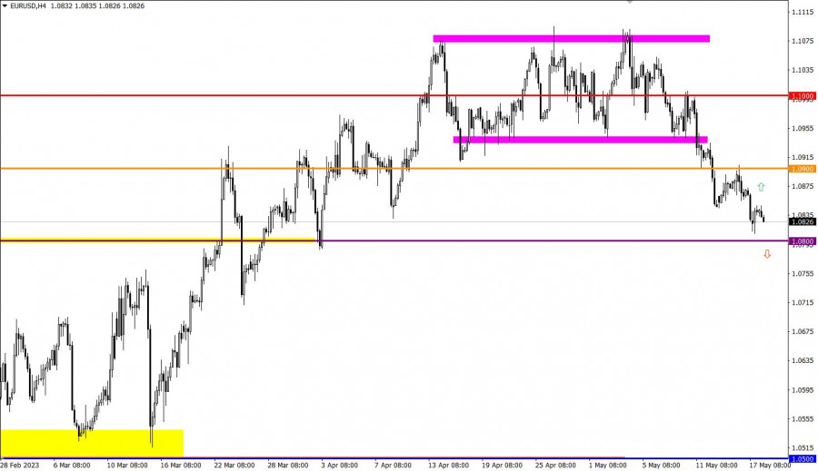 Учимся и анализируем, торговый план для начинающих трейдеров EUR/USD и GBP/USD 18.05.23ИнстаФорекс - Instaforex, 2 года назад Детали экономического календаря от 17 мая Инфляция в еврозоне в апреле 2023 года составила 7,0%, что на 0,1% больше, чем в марте. В прошлом году этот показатель достигал 7,4%. По всему Евросоюзу инфляция в апреле составила 8,1%, что на 0,2% меньше, чем в марте, и совпадает с уровнем прошлого года. Европейская экономика продолжает демонстрировать стойкость в сложных глобальных условиях. Низкие цены на энергоносители, смягчение ограничений поставок и сильный рынок труда способствовали умеренному росту в первом квартале 2023 года, уничтожая страхи относительно рецессии. Благодаря этому экономический прогноз для ЕС на 2023 год был скорректирован вверх до 1,0% (против 0,8% в зимнем прогнозе), а на 2024 год - до 1,7% (против 1,6% зимой). При этом инфляция была также скорректирована вверх по сравнению с зимой до 5,8% в 2023 году и 2,8% в 2024 году в еврозоне. В связи с высокой инфляцией условия финансирования, скорее всего, ужесточатся. Несмотря на ожидания, что ЕЦБ и другие центральные банки ЕС скоро завершат цикл повышения процентных ставок, недавние турбулентности в финансовом секторе могут увеличить давление на стоимость и доступность кредитования, замедляя рост инвестиций, особенно в жилищное строительство. Разбор торговых графиков от 17 маяВ ходе инерционного движения евро по отношению к доллару США почти достигло уровня поддержки 1.0800. Это вызвало технический сигнал о перепроданности евро и привело к сокращению объема коротких позиций. Фунт стерлингов по отношению к доллару США обновил локальный минимум во время коррекционного движения, что привело к снижению цены ниже уровня 1.2430. Однако радость продавцов была недолгой, поскольку сразу же произошел откат, и котировка вернулась к уровню открытия торгового дня.