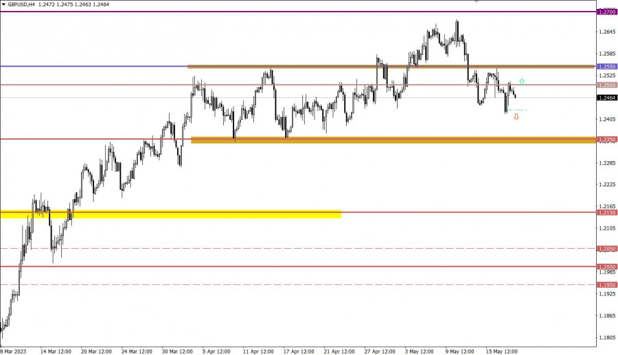 В период американской торговой сессии будут опубликованы заявки на пособие по безработице в США, где прогнозируют незначительное сокращение их общего показателя. Детали статистических данных указывают, что объем повторных заявок на пособие может увеличиться с 1 813 тыс. до 1 818 тыс., а объем первичных заявок на пособие может сократиться с 264 тыс. до 254 тыс. Временной таргетинг Заявки на пособие по безработице в США – 15:30 по МСК Торговый план – EUR/USD 18 маяВ данной ситуации уровень 1.0800 является переменной опорой, относительно которой произошел откат. Для дальнейшего снижения котировки необходимо удерживаться ниже этого значения, по крайней мере в четырехчасовом периоде. В противном случае может возникнуть застой. Торговый план – GBP/USD 18 маяНесмотря на небольшой откат, на рынке все еще продолжается коррекционное движение. Возвращение цены ниже уровня 1.2440 может возобновить короткие позиции и привести к новому локальному минимуму в коррекционном цикле. Что касается восходящего сценария, для получения полноценного технического сигнала о восстановлении курса английской валюты относительно коррекционного движения, цена должна удерживаться выше уровня 1.2550, по крайней мере в четырехчасовом периоде. Что отражено на торговых графиках?