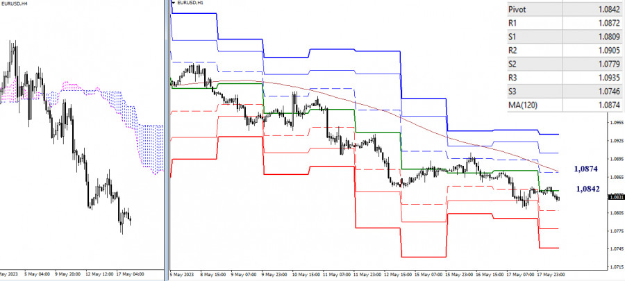 EUR/USD и GBP/USD 18 мая – технический анализ ситуацииИнстаФорекс - Instaforex, 2 года назад EUR/USD Старшие таймфреймы Вчера игроки на понижение исполнили снижение и протестировали поддержку верхней границы дневного облака Ишимоку (1,0814). Успешное закрепление в облаке, позволит рассматривать дальнейшее снижение к его нижней границе (1,0775), усиленной на данном участке недельной поддержкой (1,0763). Оставленные накануне уровни 1,0864 – 1,0901 (недельный краткосрочный тренд + месячный среднесрочный тренд) сейчас выполняют роль сопротивлений, при попытке игроков на повышение восстановить свои позиции они будут включены в работу в первую очередь. Н4 – Н1 На младших временных интервалах основное преимущество в сложившейся ситуации принадлежит игрокам на понижение. Действует нисходящий тренд. Ориентирами для продолжения снижения внутри дня служат поддержки классических Пивот уровней. Сегодня они расположены на 1,0809 – 1,0779 – 1,0746. Ключевые уровни младших таймов 1,0842 – 1,0874 (центральный Пивот уровень дня + недельная долгосрочная тенденция) сейчас выступают сопротивлениями и важными рубежами на случай развития восходящей коррекции. Закрепление выше 1,0874 и разворот мувинга могут изменить действующий баланс сил. *** GBP/USD Старшие таймфреймы Вчера протестирована поддержка недельного краткосрочного тренда (1,2421). Тем не менее, пара к закрытию дня вернулась в зону прежней консолидации, в район притяжения уровней дневного креста Ишимоку (1,2477 – 1,2515 – 1,2553). В результате основные задачи рынка не изменились. Игрокам на понижение нужно пробить недельную поддержку 1,2421, после этого будут доступны другие ориентиры (1,2302 – 1,2305), а игрокам на повышение нужно восстановиться настолько, чтобы дневной крест вновь был их зоной поддержки, тогда откроется дорога к максимальному экстремуму (1,2678). Н4 – Н1 В настоящий момент можно констатировать, что на младших таймах пара продолжает работать в зоне коррекции. Поддержки классических Пивот уровней сегодня расположены на 1,2432 – 1,2382 – 1,2343. Ключевые уровни сейчас находятся в районе 1,2471 – 1,2496 (центральный Пивот уровень дня + недельная долгосрочная тенденция). Закрепившись выше и изменив наклон тенденции, игроки на повышение завладеют основным преимуществом и смогут рассматривать подъём к своим внутридневным ориентирам – 1,2521 – 1,2560 – 1,2610 (классические Пивот уровни). *** При техническом анализе ситуации использованы: старшие таймфреймы – Ichimoku Kinko Hyo (9.26.52) + уровни Фибо Киджун; младшие таймфреймы – Н1 – Pivot Points (классические) + Moving Avarage 120 (недельная долгосрочная тенденция). Материал предоставлен компанией InstaForex - www.instaforex.com |