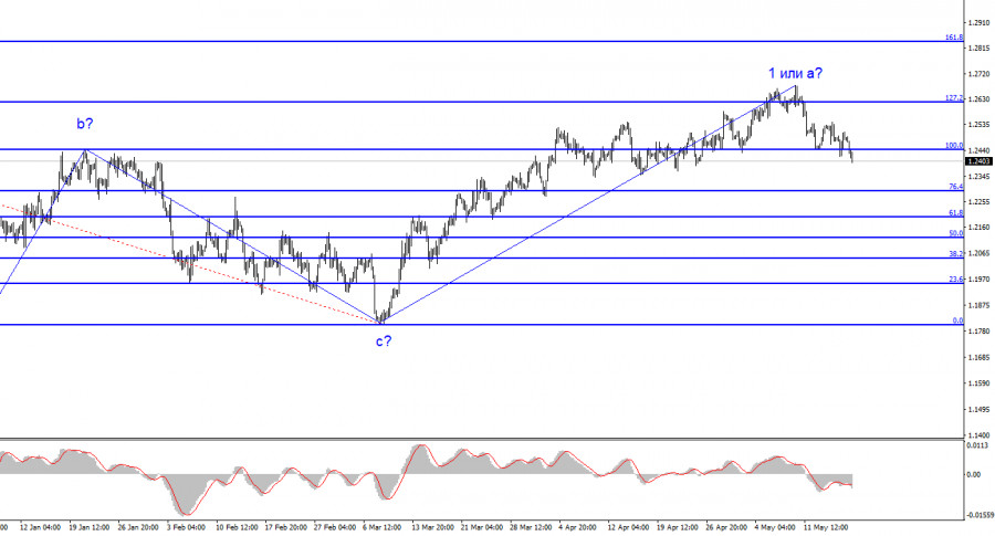 Анализ GBP/USD. 18 мая. Банк Англии находится рядом с пиковым значением ставкиИнстаФорекс - Instaforex, 2 года назад По инструменту Фунт/Доллар волновая разметка на данный момент выглядит по-прежнему сложно и неоднозначно. В том смысле, что она не выглядит как классический коррекционный или импульсный участок тренда. Так как пик текущей повышательной волны зашел за пик последней волны b, то весь понижательный участок тренда, состоящий из волн a-b-c, можно считать завершенным. Следовательно, сейчас по фунту продолжается построение нового повышательного участка тренда. Начиная с 8 марта я могу выделить только одну волну текущего масштаба, поэтому имеются все основания предполагать, что построение нового участка тренда займет много времени. Я по-прежнему считаю, что оба инструмента должны строить схожие волновые формации. Если это действительно так, то волна 2 или b по фунту может быть протяженной, а в это же время по европейцу может быть построена нисходящая трехволновка. Таким образом, я ожидаю глубокой волны b, как и в случае с построением предыдущей трехволновки. Следовательно, ожидать снижения инструмента можно к отметке 1,1850 или чуть выше. На текущий момент волна 1 или а имеет все шансы считаться завершенной, но все же имеются и определенные сомнения. «Голубиных» сигналов все большеКурс инструмента Фунт/Доллар в четверг снизился на 80 базовых пунктов. Спрос на валюту Великобритании снижался весь день, а удачная попытка прорыва уровня 100,0% по Фибоначчи указывает все-таки на готовность рынка продавать инструмент. Снижение котировок может продолжиться в рамках второй волны. Из новостной фона четверга выделить я практически ничего не могу. В Великобритании сегодня не было никаких интересных отчетов, а американские отчеты могли только немного повысить спрос на валюту США. Однако доллар и без них с самого начала дня рос в цене, что соответствует текущей волновой картине. Как я уже говорил ранее, рынок долго и упорно отыгрывал повышения ставки Банка Англии наперед. Сейчас от британского регулятора поступает все больше и больше скрытых сигналов, что на сильное ужесточение рассчитывать уже не стоит. Экономисты из ING считают, что до пикового уровня ставки остается 40 базисных пунктов, что соответствует 1-2 повышениями ставки. Я не сомневаюсь, что рынок уже учел это изменение, поэтому начал выходить из покупок. Исходя из этого, спрос на британца может и дальше продолжать снижаться. Британская статистика последних недель не порадовала. Уровень безработицы вырос, число заявок на пособия по безработице – тоже, инфляция по-прежнему снижается очень медленно, а экономика – не растет. Эндрю Бейли днем ранее мог оказать поддержку фунту, но в его речи не было никаких «ястребиных» выражений. То же самое можно сказать и о сегодняшних выступлениях Дэйва Рамсдена и Бена Бродбента. Общие выводыВолновая картина инструмента Фунт/Доллар уже давно предполагает построение новой нисходящей волны. Волна b может получиться очень глубокой, так как все волны последнего времени приблизительно равны. Первая волна восходящего участка может еще усложниться сильнее. Неудачная попытка прорыва отметки 1,2615, что соответствует 127,2% по Фибоначчи, указывает на готовность рынка к продажам, а удачная попытка прорыва отметки 1,2445, что приравнивается к 100,0% по Фибоначчи, повторяет эт