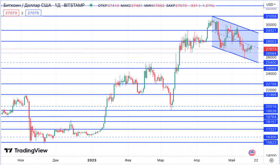 Bitcoin: толпа настроена оптимистично. Киты, кажется, тожеИнстаФорекс - Instaforex, 2 года назад C технической точки зрения на графике Bitcoin пока ничего нового: главная криптовалюта консолидируется под психологической отметкой в 27 000 долларов и срединной линией нисходящего тренда. Отсюда локально есть два сценария: пробой этих границ и восстановление в канале в область 29 000 долларов, либо падение к поддержке 25 400. При таком краткосрочном восстановлении цены из области ниже 26 000 долларов майнеры, похоже, воспользовались возможностью подороже продать свои накопления. Bitcoin под давлением продавцов?Согласно недавно поступившим данным, был зафиксирован отток 1750 BTC из кошелька майнера, что привело к сокращению резерва. Адрес кошелька отправил эти BTC на сумму 48 миллионов долларов на криптобиржу Binance. Этот шаг указывает на то, что давление со стороны продавцов может исходить от майнеров. Ончейн-данные показывают, что 21 апреля 2023 года на тот же адрес кошелька был внесен 5791 BTC (приблизительно на сумму 163 миллиона долларов). После этого цена главной криптовалюты упала примерно на 3% в течение 5 часов. 1 декабря 2022 года кошелек майнера получил 10 тысяч биткоинов (приблизительно на сумму 171 миллион долларов). В то время BTC торговался по средней цене 17 101 доллар. Однако сейчас в кошельке находится около 2459 BTC, а прибыль составляет около 107 миллионов долларов. Макроэкономические условия не исключают дальнейшего падения BTCВ текущей ситуации, когда на рынке затишье и почти нет драйверов для дальнейшего роста, на рынке продолжают обсуждать возможные сценарии. Криптотрейдер и аналитик Дэн Гамбарделло поделился прогнозом о том, что Bitcoin все еще может упасть до 24 000 долларов в ближайшие несколько недель. И хотя гарантий давать по этому поводу нельзя, с макроэкономической точки зрения имеет смысл прогнозировать падение до этого уровня в ближайшем будущем. Трейдер упомянул недавнее объявление Tether о том, что он купит BTC на сумму, равную 15% прибыли компании. Он считает это событие общим положительным знаком для криптопространства. В тандеме с локальным ростом цены BTC также увеличил дневной объем торгов за последний день. В результате общий дневной объем торгов BTC составил примерно 14,9 миллиарда долларов. Накопление Bitcoin-китами - признак долгосрочного интересаОнчейн-данные показывают, что Bitcoin-киты накопили десятки тысяч монет главной криптовалюты за период чуть более месяца, пока цена находится в зоне консолидации. По данным аналитической компании Santiment, занимающейся блокчейном, киты или лица, владеющие от 1000 до 10 000 BTC, всего за последние пять недель накопили 2,32 миллиарда долларов в главной криптовалюте. Santiment отмечает, что цена Bincoin выросла более чем на 30% в начале этого года после того, как киты начали аналогичное накопление в период с конца декабря 2022 года по начало января. Ранее на этой неделе аналитическая фирма сообщила, что отслеживала самые популярные видеопубликации и обнаружила, что настроения на криптовалютных рынках были бычьими, что свидетельствует о росте оптимизма по сравнению с предыдущими неделями. «Отфильтровывая популярные видеоролики в начале второй половины мая, мы видим, что настроения в основном оптимистичны. Как правило, мы можем сделать вывод, что это хорошее отражение настроений толпы. Преобладает больше оптимизма по сравнению с прошлыми неско