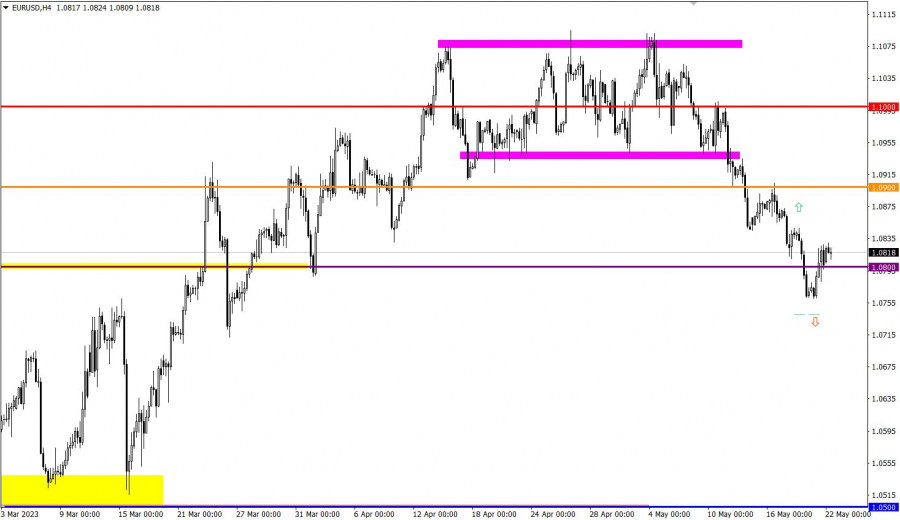 Учимся и анализируем, торговый план для начинающих трейдеров EUR/USD и GBP/USD 22.05.23ИнстаФорекс - Instaforex, 2 года назад Детали экономического календаря от 19 маяВ прошлую пятницу макроэкономический календарь не содержал значимых статистических данных для Европы, Великобритании и Соединенных Штатов. Однако, были запланированы выступления ряда представителей ЕЦБ и ФРС. В своей речи глава ФРС Джером Пауэлл снова отметил высокий уровень инфляции, стабильность банковского сектора и наличие инструментов для регулирования экономики. Глава ЕЦБ Кристин Лагард также указала на продолжительный путь, который нужно пройти для сдерживания инфляции. Разбор торговых графиков от 19 маяНисходящее инерционное движение на паре EUR/USD замедлило свое развитие вблизи уровня 1.0750. Благодаря явному техническому сигналу о перепроданности, произошел откат, и котировка поднялась выше уровня 1.0800. Фунт стерлингов по отношению к доллару в прошлую пятницу частично восстановил свои потерянные позиции, укрепившись примерно на 0.5% в стоимости. Экономический календарь на 22 мая