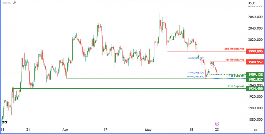 XAU/USD: ожидается усиление медвежьего импульса. Прогноз на 23 мая 2023 г.