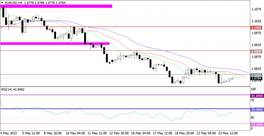 Горящий прогноз по EUR/USD от 24.05.2023ИнстаФорекс - Instaforex, 2 года назад Если в Европе предварительные оценки индексов деловой активности оказались хуже прогнозов, то вот в Соединенных Штатах совсем наоборот. Снизился лишь производственный индекс, с 50,2 пунктов до 48,5 пунктов, тогда как должен был вырасти до 50,3 пунктов. А вот индекс деловой активности в сфере услуг, вместо того чтобы снизиться с 53,6 пунктов до 53,0 пунктов, подскочил до 55,1 пунктов. В результате, составной индекс деловой активности смог подрасти с 53,4 пунктов до 54,5 пунктов. В целом же получилась довольно забавная ситуация - все индексы которые должны были вырасти, снизились, а те которым прочили снижение, показали рост. Причем не только в Соединенных Штатах, но и в Европе. И единственное что удивляет, так это относительно скромное снижение единой европейской валюты. Но не стоит забывать о ее чрезмерной перепроданности, которая и ограничивает потенциал дальнейшего снижения. Евро по отношению к доллару США сократила объем коротких позиций в районе локального минимума прошлой недели. Вследствие чего возник отскок цены, что указывает на возможность замедления нисходящего цикла по евро. RSI H4 движется в нижней области индикатора, что может указывать на сохраняющиеся нисходящий настрой среди участников рынка. Скользящие линии MA на Alligator H4 направлены вниз, что соответствует направлению коррекционного хода. Ожидания и перспективы Действующий отскок вполне может вернуть котировку выше значения 1.0800, однако это не станет чем-то радикальным. Основной технический сигнал о росте объема длинных позиций возникнет лишь после удержания цены выше значения 1.0850. До тех пор не исключается болтанка в диапазоне 1.0750/1.0850. Комплексный индикаторный анализ в краткосрочном и внутридневном периодах имеет сигнал о росте за счет действующего на рынке отскока цены. Материал предоставлен компанией InstaForex - www.instaforex.com |